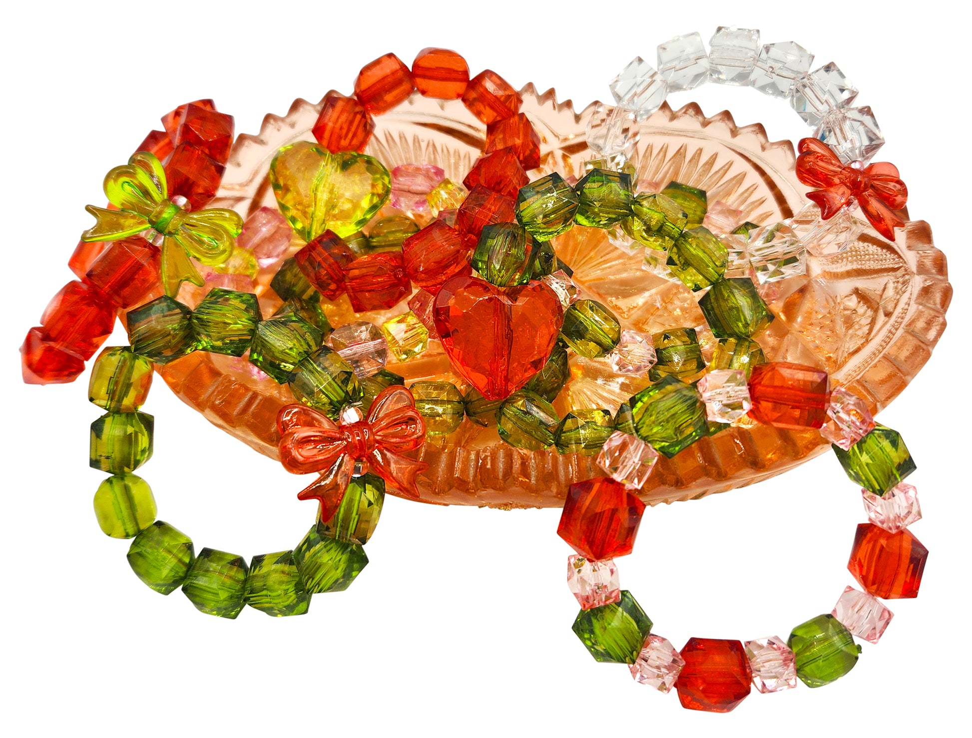 Our acrylic rock candy bracelets are a fave and always fast sellers and this year, we are featuring heart colors for the holidays! These new heart bracelets are available in three color combos--red beads with green heart, forest green beads with red heart, and clear with red heart (this last one is in the year long catalog) They are strung by hand on sturdy clear stretch cord sized to fit a child's or small adult's wrist. Price is per unit, min 6 units per style. (Can mix all 3 colors within this style to reach 6 unit min.) Please note below how many of each color you would like OR if you just want assorted colors choose ASSORTED and we will ship an even mixture of both styles. These make great stocking stuffers for the holidays!!